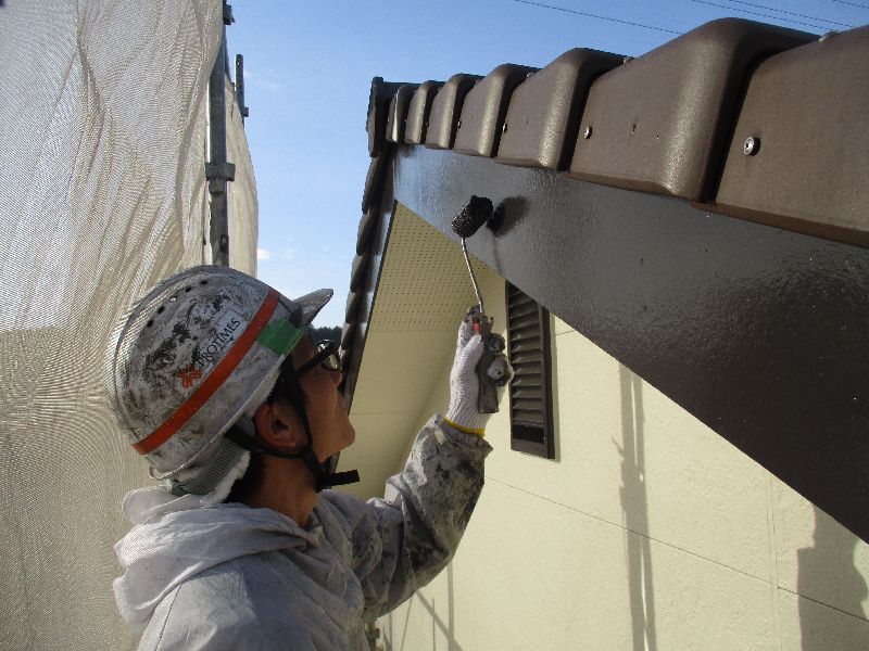 外壁塗装工事 いよいよ多色塗による上塗り作業です。