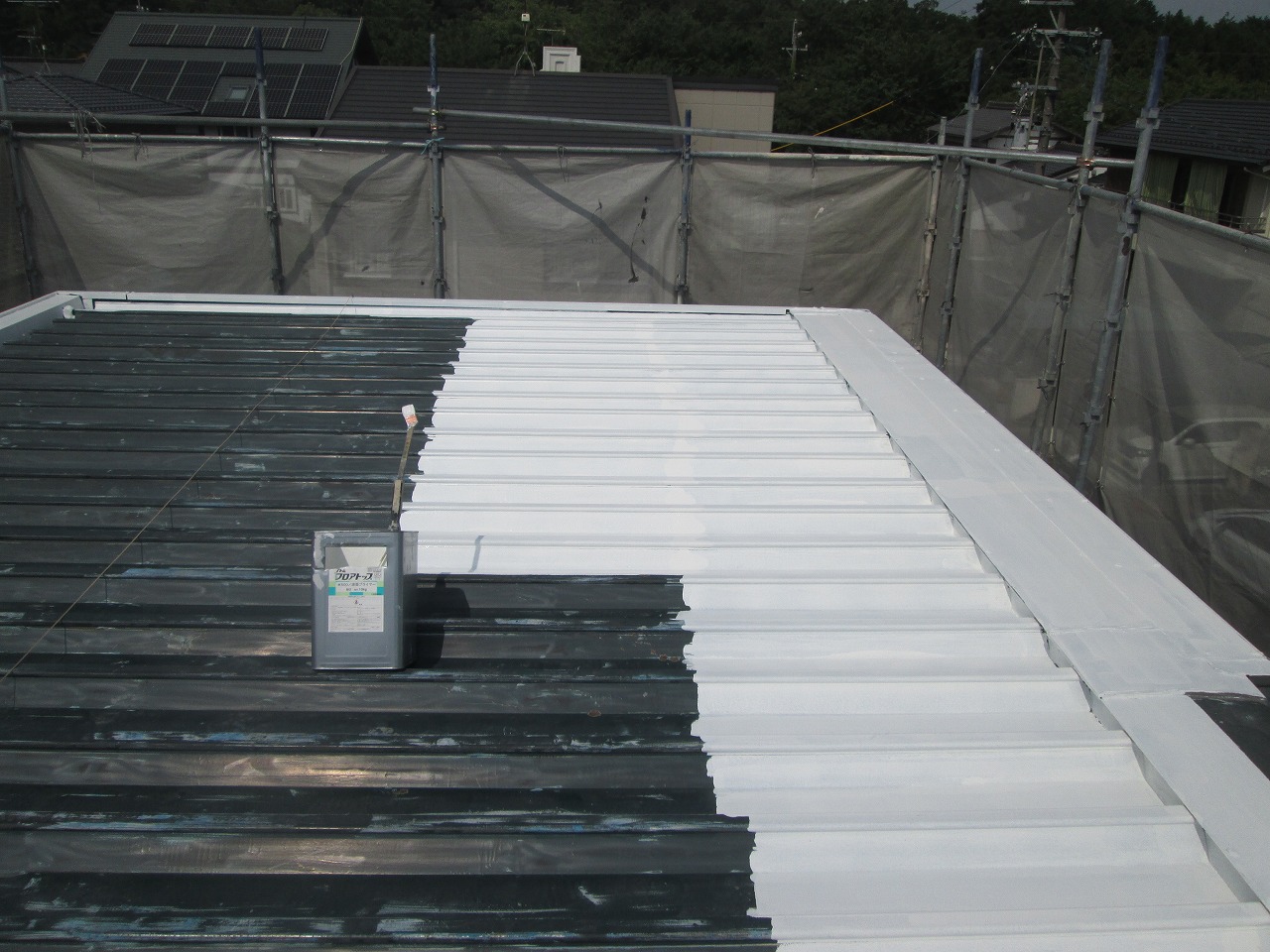 岐阜県関市前山町 折半屋根塗装 低汚染・遮熱塗料使用